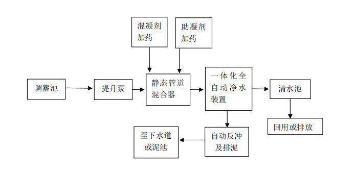 FA型一体化全自动净水器 FA型高效能全自动净水器集絮凝、沉淀、反冲、集水、过滤等工艺于一体;无需专业人员操作而能达到单体全自动运行的净水装置。 本装置包括布水、反应、沉淀、过滤、集水、集泥、自动反洗七个主要单元,内装卵石、各种规格石英砂滤料,设备主壳均为碳钢制作,内外部采用特殊涂料进行防腐处理,使用寿命长,适用范围广,性能卓越,广泛用于大、中、小型水厂(站)的建设和改造。 一、流程图