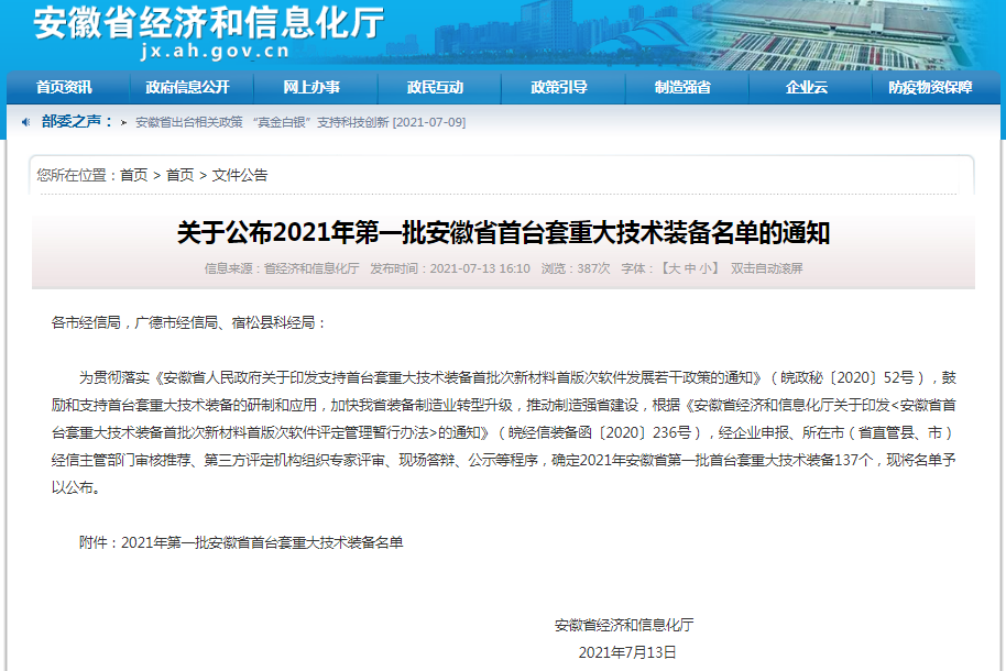 热烈祝贺中霖中科研制矿井水深度处理设备获批认定为安徽省首台套重大技术装备日前,安徽省经济和信息化厅正式发布了《关于公布2021年第一批安徽省首台套重大技术装备名单的通知》,经过经信主管部门审核推荐、第三方评定机构组织专家评审、现场答辩、公示等程序,由中霖中科自主研制的“矿井水深度处理及综合利用示范工程水处理设备”被认定为安徽省首台套重大技术装备,该设备的研制满足了国家对生态文明建设和实施制造强国的战略要求,对创新引领绿色矿山高质量建设和节能减排意义深远。 首台套重大技术装备是指实现重大技术突破、拥有自主知识产权的核心技术和自主品牌,经用户首次使用,国家重点扶持的成套技术装备或单台设备。此次被认定为安徽省首台套重大技术装备是公司创新能力、制造能力的集中体现,与安徽省、市、区各级政府领导的关心、爱护与支持,以及广大客户的信任密不可分,也更坚定了中霖人“生态水务 美丽中国”的理想信念。