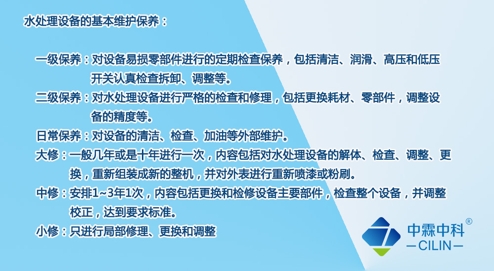 电厂水处理维保电厂水处理系统设备应用数量的激增,随之而来出现了很多运行中的故障问题,由于很多使用单位中都没有专业的水处理设备维护人员,所以一旦出现细小的故障,都必须停机等厂家派人维修,如此一来,就造成了使用单位的资金损失,中霖中科根据多年的经验,安排专人指导,并提供7*24小时的优质服务。待设备正常运行后。我们会对设备操作人员和相关管理人员进行技术培训,熟练操作流程并了解有关技术要求。